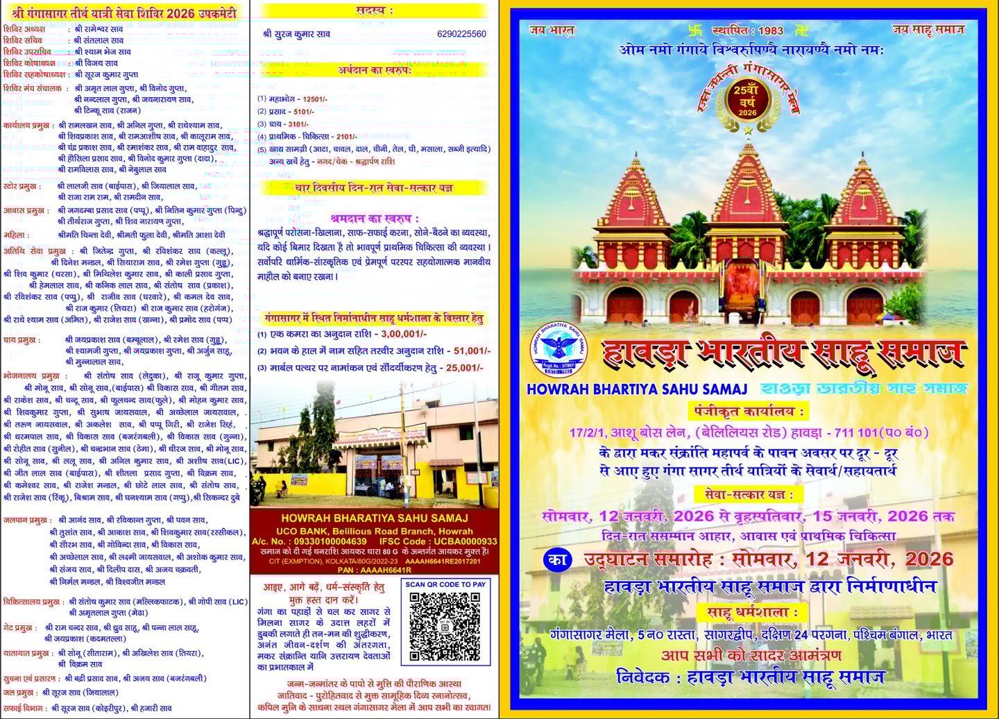 Howrah Bharatiya Sahu Samaj dedicates itself to supporting Ganga Sagar pilgrims with compassion, offering medical aid, food, shelter, and guidance during their sacred journey.